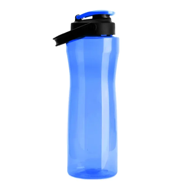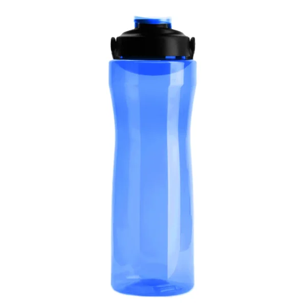 Cilindro de plástico, con tapa de rosca con asa para sujetar fácilmente y tapa abatible para beber sin derramar.