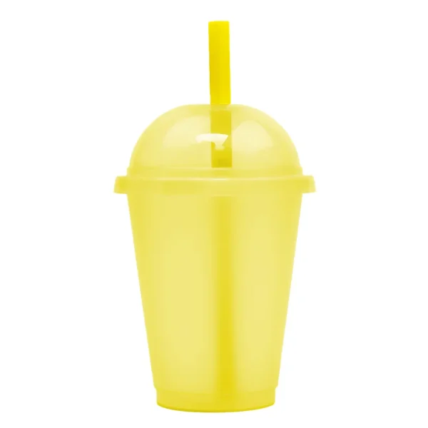 Vaso que cuenta con una tapa tipo domo con cierre push, incluye un popote ancho, que lo hace ideal para disfrutar una gran variedad de bebidas con diferentes toppings.