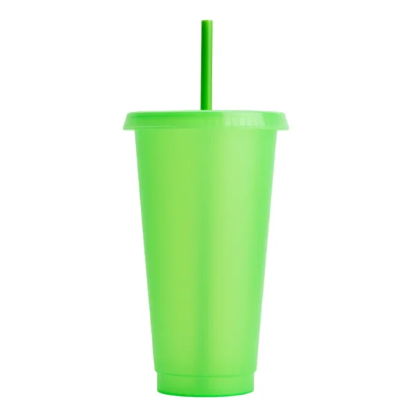 Vaso de plástico con tapa push y popote.